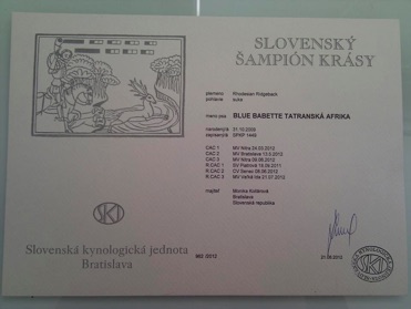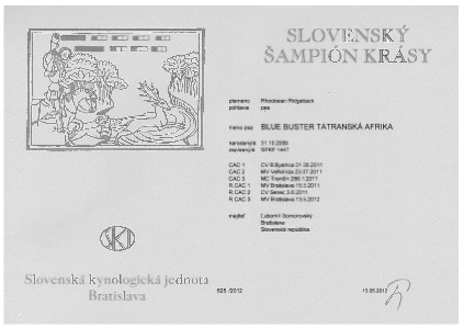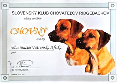 BLUE BUSTER Tatranská Afrika sa 27.5.2012 stal oficiálnym chovným psom.