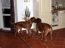 K ľuďom sú veľmi priateľskí, nekonfliktní, so sučkami nemajú problém, so psíkmi si sadnú individuálne.