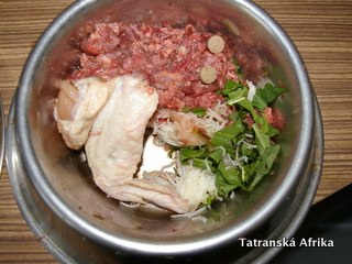 1.-2.deň: 1. 175 g kuracie prsia mleté, 35 g jablko,