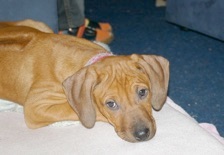Teach your puppy with game and positive reinforcement, better is to train him shorter time and more often, so he does not get bored. It is not true that ridgeback is stupid and will not learn anything – use the commands with common sense and you will be surprised how much he will learn.