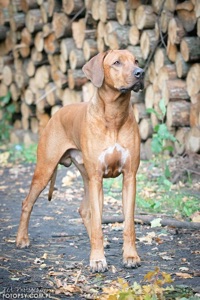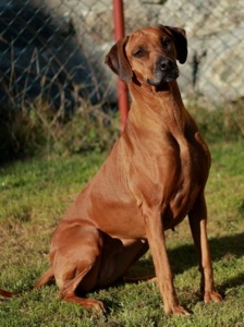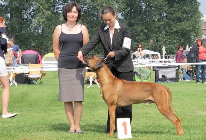 Má výšku na hornej hranici štandardu, dobrú hornú líniu, výborné uhlenie predných aj zadných končatín,