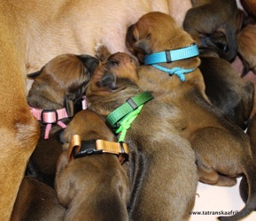 Ridgebacky mi pripomínajú med ich farbami, v tomto vrhu máme aj svetlejšie šteniatka aj tmavšie rovnako,