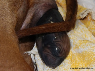 Eliška mala v brušku 8 šteniatok, prvý chlapček sa narodil 7:55, posledný 14:40,