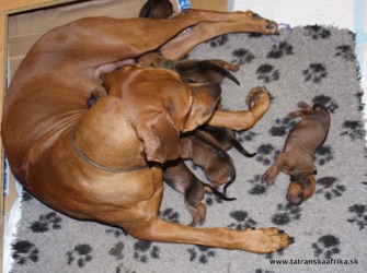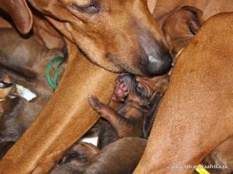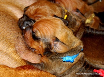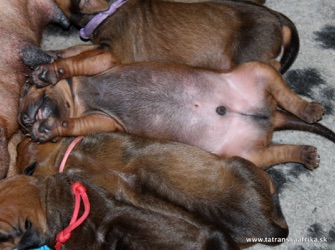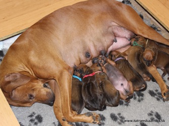 Eliška svoj tretí pôrod zvládla veľmi hladko a rýchlo a vzorne sa o všetky šteniatka stará.
