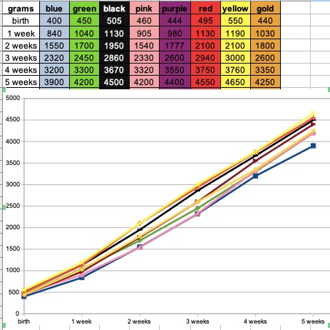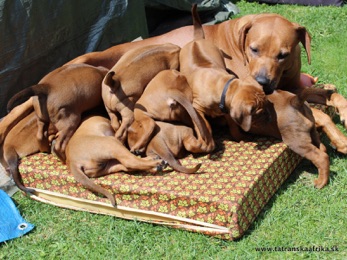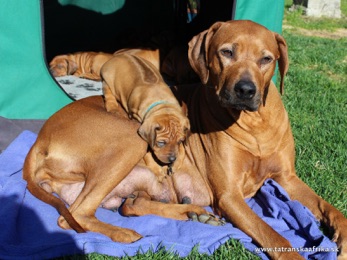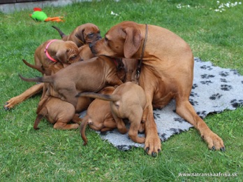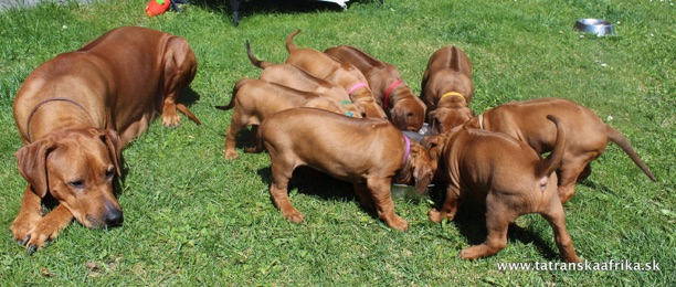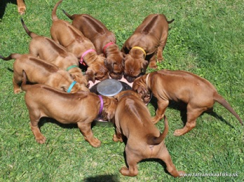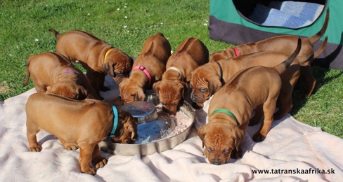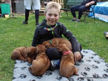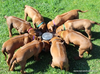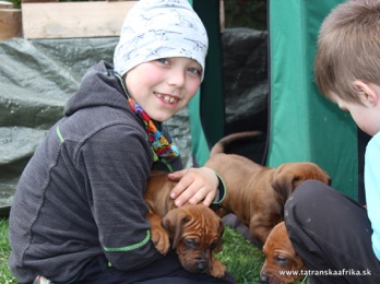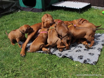 Aj keď počasie nám veľmi neprialo, v 5.týždni šteniatka chodili každý deň aspoň na niekoľko hodín von.
