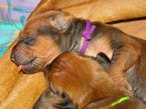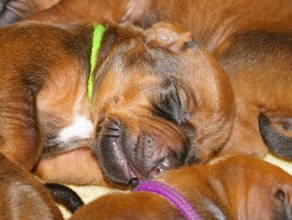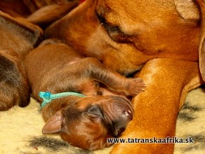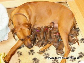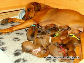 Berry mala v brušku 12 šteniatok, prvý chlapček sa narodil 19:40, posledný druhý deń 8:50 už bol žiaľ mŕtvy, zostalo nám 6 chlapcov a 5 dievčat.