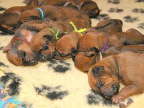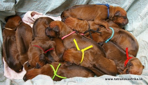 11 šteniatok malo štandardné ridge, jeden psík má posun koruniek,