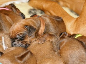 Na konci 1. týždňa šteniatka približne zdvojnásobili svoju hmotnosť: